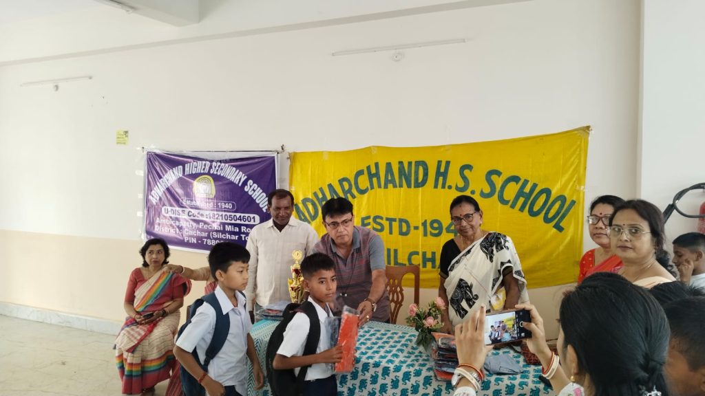 शिलचर: अक्षय तृतीया के शुभ अवसर पर सोमवार को अधरचांद हायर सेकेंडरी स्कूल में एक भव्य पोशाक वितरण समारोह का आयोजन किया गया। विद्यालय परिसर में आयोजित इस कार्यक्रम में छात्र-छात्राओं, शिक्षक-शिक्षिकाओं और अभिभावकों की उपस्थिति से उत्साहपूर्ण और आनंदमय वातावरण देखने को मिला।