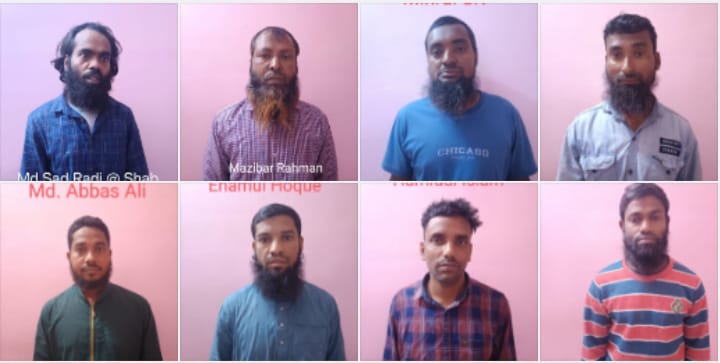 गुरुवार को असम पुलिस मुख्यालय में आयोजित एक संवाददाता सम्मेलन में असम पुलिस के स्पेशल डीजीपी हरमीत सिंह ने बताया कि राष्ट्रव्यापी आपरेशन ‘प्रगति’ तहत केरल और पश्चिम बंगाल की पुलिस की मदद से आतंकी माड्यूल का पर्दाफाश किया गया है। पुलिस ने संयुक्त अभियान में आठ जिहादियों काे गिरफ्तार किया है। इन जिहादियाें की पहचान अब्दुल करीम, मु. अब्बास अली, एनामुल हक, हमिदुल इस्लाम, मिनरूल एसके, शुरू इस्लाम मंडल, मु. साद रंदी उर्फ शाब शेख, मजिबर रहमान के रूप में की गई है। इनके पास से दौरान बांग्लादेशी दस्तावेज, कट्टरपंथी साहित्य और डिजिटल उपकरण जब्त किए गए हैं।
