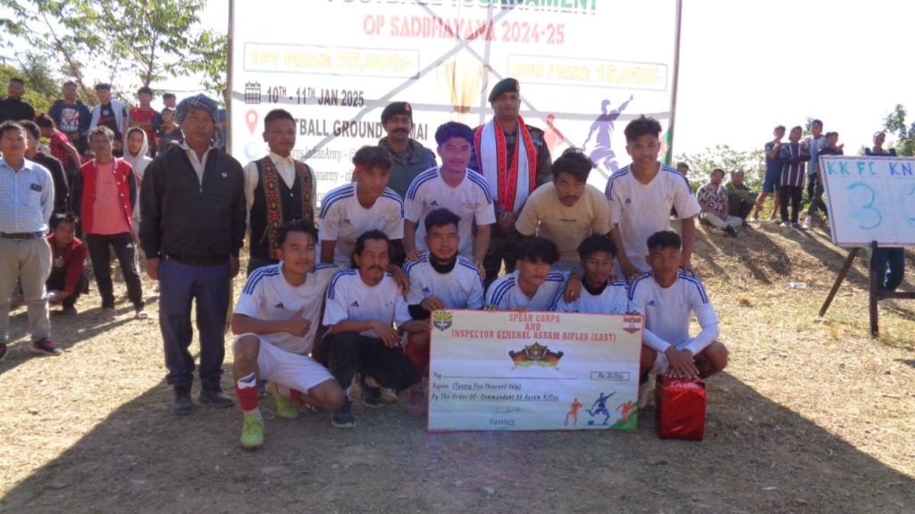 प्रे.स. शिलचर, 13 जनवरी: असम राइफल्स ने ऑपरेशन सद्भावना के तहत 10 से 11 जनवरी 2025 तक मणिपुर के तमेंगलोंग जिले के कैमै फुटबॉल ग्राउंड में “कैमै रेंजेस फुटबॉल टूर्नामेंट” का सफल आयोजन किया। इस टूर्नामेंट का उद्देश्य स्थानीय युवाओं को खेलों के माध्यम से जोड़ना और उनमें खेल भावना का विकास करना था।