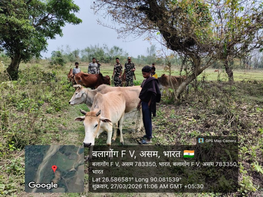 कोकराझार 28 मार्च । 31वीं वाहिनी सशस्त्र सीमा बल (एसएसबी) की ‘एफ’ कंपनी भेप्सु के तहत टीसी टाकंपुर की टीम ने तस्करी के खिलाफ बड़ी कार्रवाई की है। गुप्त सूचना के आधार पर कार्रवाई करते हुए जवानों ने नबीनगर गांव के पास घेराबंदी कर सात बैलों (Ox) को जब्त किया है।
