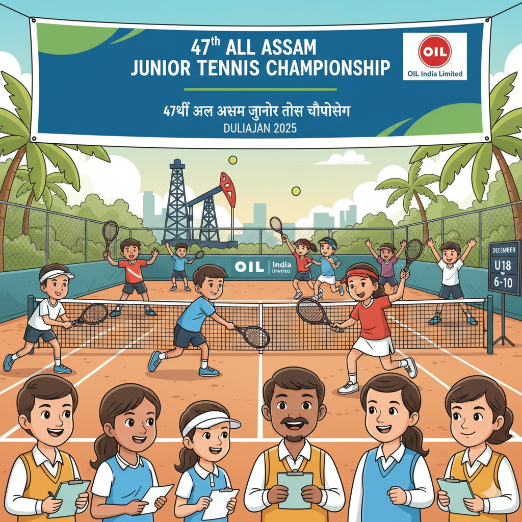 डिब्रूगढ़: ऑयल इंडिया लिमिटेड (OIL) 6 से 10 दिसंबर 2025 तक दुलियाजान में OIL ऑल असम जूनियर टेनिस चैंपियनशिप (OAAJTC) के 47वें संस्करण की मेजबानी करेगा। ऑल असम टेनिस एसोसिएशन (AATA) के तत्वावधान में आयोजित इस प्रतिष्ठित राज्य स्तरीय टूर्नामेंट में राज्य भर से 18 वर्ष से कम आयु के प्रतिभाशाली लड़के और लड़कियां भाग लेंगे।