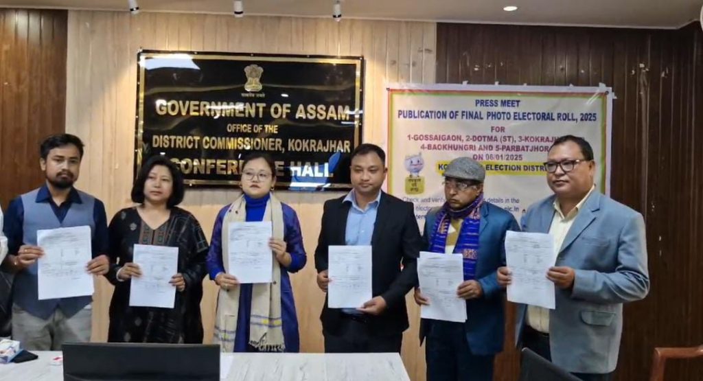 कोकराझार, 6 जनवरी: कोकराझार जिला प्रशासन ने सोमवार, 6 जनवरी को जिले के पांच विधानसभा क्षेत्रों- कोकराझार, बउखूंगारी , दोतमा , गोसाईगांव और परबतझोरा के लिए अंतिम मतदाता सूची जारी की।