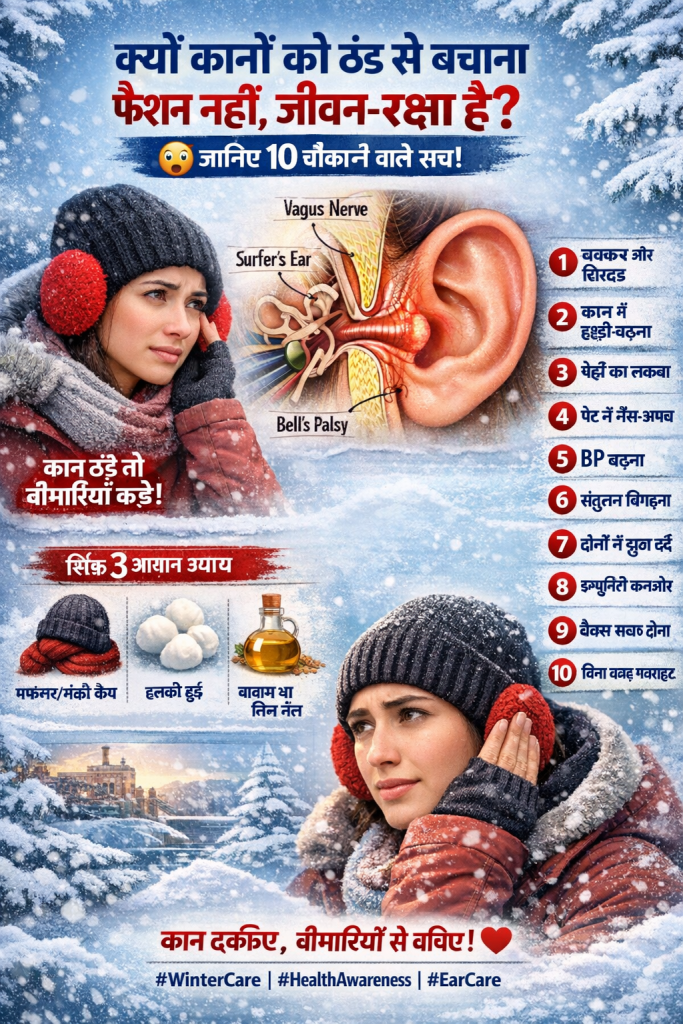 क्या आप जानते हैं?कान सिर्फ सुनने का अंग नहीं, बल्कि शरीर के तापमान और नर्व सिस्टम का “सेंसेटिव सेंटर” हैं।