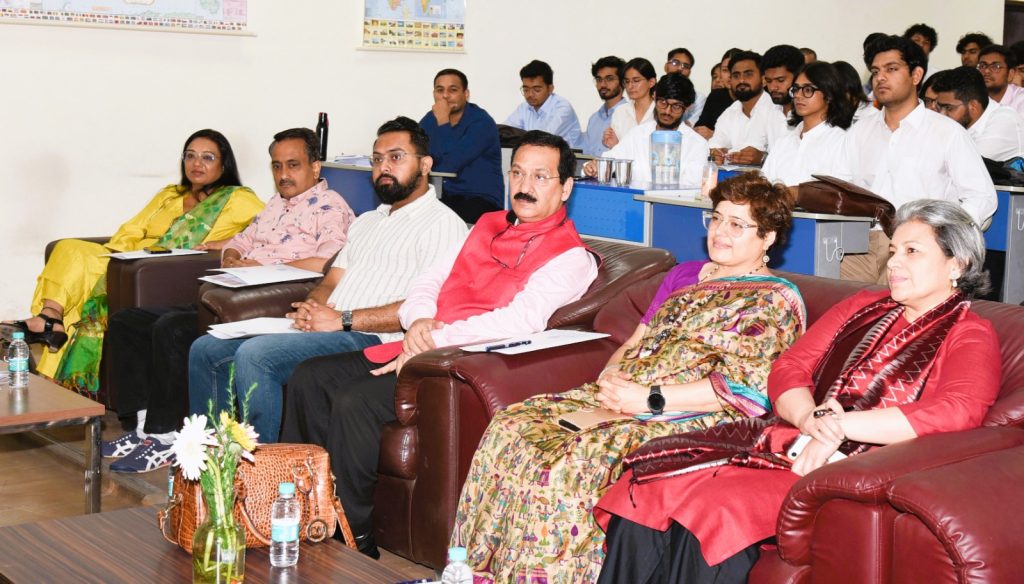 ‘कैंपेन प्लानिंग प्रजेंटेशन’ के दौरान विद्यार्थियों ने एचपी, जागरण समूह, यूनाइटेड नेशंस, अदानी (गुवाहाटी हवाई अड्डा) और बिकानो जैसे क्लाइंट्स के लिए कैंपेन प्लान किये। इस अवसर पर विज्ञापन एवं जनसंपर्क विभाग की पाठ्यक्रम निदेशक डॉ. मीता उज्जैन, डिजिटल मीडिया विभाग की पाठ्यक्रम निदेशक प्रो. अनुभूति यादव, जागरण समूह के जनरल मैनेजर प्रशांत कश्यप और एलजीबीआई एयरपोर्ट, सीएओ कार्यालय के उप प्रबंधक पृथ्वीराज एन भी उपस्थित रहे।