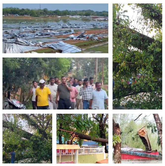 रविवार दोपहर अचानक आए भीषण आंधी-तूफान ने दक्षिण असम के कछार जिले में व्यापक तबाही मचा दी। Silchar शहर समेत आसपास के इलाकों में तेज हवाओं के चलते जनजीवन पूरी तरह अस्त-व्यस्त हो गया। खेतों में टिन की छतों के उड़ते मंजर ने तूफान की भयावहता को स्पष्ट कर दिया।