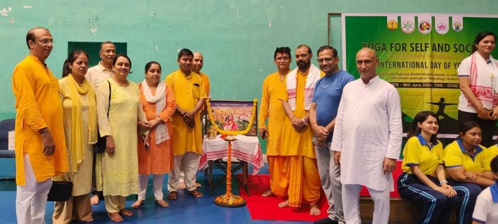 राष्ट्रीय आयुष मिशन एवं इंडियन योगा एसोसिएशन के तत्वाधान में अखिल विश्व गायत्री परिवार एवं गायत्री चेतना केंद्र के कार्यकर्ताओं द्वारा नॉर्थ गुवाहाटी आईआईटी में योग दिवस मनाया गया। गायत्री चेतना केंद्र नॉर्थ ईस्ट के समन्वयक में क्षीरोदेश प्रसाद जी ने दीप प्रज्वलित करके कार्यक्रम का शुभारंभ किया उन्होंने उद्बोधन में बताया कि योग को अपने जीवन में दैनिकचर्या में जोड़ना चाहिए तथा शरीर को स्वस्थ रखने के लिए प्रातः योग करना चाहिए क्योंकि स्वस्थ शरीर में ही स्वस्थ मष्तिक का निवास होता है मिशन के विचार क्रांति अभियान के माध्यम से युवाओं में