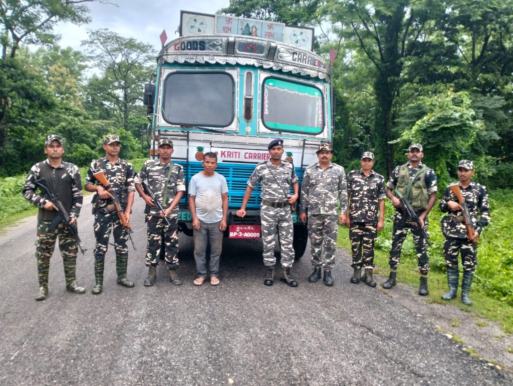 कोकराझार 7 जुलाई। छठीं वाहिनी सशस्त्र सीमा बल, रानीगुली के कार्यवाहक कमाडेंट श्री लोकेश कुमार सिंह के मार्गदर्शन व श्री संजीव कुमार, उप-कमाडेंट के नेतृत्व मे सीमा चौकी दादागिरी को मिली गुप्त सूचना के आधार पर सीमा चौकी दादगिरी के द्वारा अंतर्राष्ट्रीय भारत-भूटान सीमा के पिलर संख्या 169 / 5 से लगभग 08 किलोमीटर दूर भारतीय क्षेत्र में देवदंगी के पास गस्ती के दौरान 01 भूटानी ट्रक (No.BP 3A 0009) में लदे इमारती लकड़ी को ले जाया जा रहा था, तभी सशस्त्र सीमा बल की गस्ती दल ने ट्रक में लदे भारी मात्रा में (रिपोर्ट के अनुसार 800सी0एफ0टी0) इमारती लकड़ी वाले ट्रक को रोक कर पूछताछ की और उससे संबधित दस्तावेज मांगे गये जो कि ट्रक चालक द्वारा नहीं दिया गया और भी गहराई से पूछताछ करने पर ये प्रतीत हुआ कि लकड़ियां अवैध तौर पर ले जाया जा रहा है। जिसकी पहचान नाम- निरीपेन नर्जरी, उम्र 50 वर्ष, पिता स्व0 कुमार नर्जरी, ग्राम-फुलवारी – II, पोस्ट- देवश्री, पुलिस स्टेशन रूनीखाता, जिला-चिराग (असम) के रूप में की गई है। जिसको सशस्त्र सीमा बल के द्वारा जब्त कर लिया गया। जब्त की गई लकड़ी एव ट्रक की कीमत लगभग (रु-50,00,000/-) पच्चास लाख रूपया आंकी गई है। जब्त किये गये सामग्री के साथ ट्रक चालक को वन विभाग रूनीखाता को अग्रीम कार्यवाही हेतु सौंप दिया गया। छठीं वाहिनी सशस्त्र सीमा बल के द्वारा लगातार भागों में चालये गये प्रचालन गतिविधियों के कारण भारत-भूटान सीमा पर तस्करों की अवैध गतिविधियों पर अंकुश लगी है।