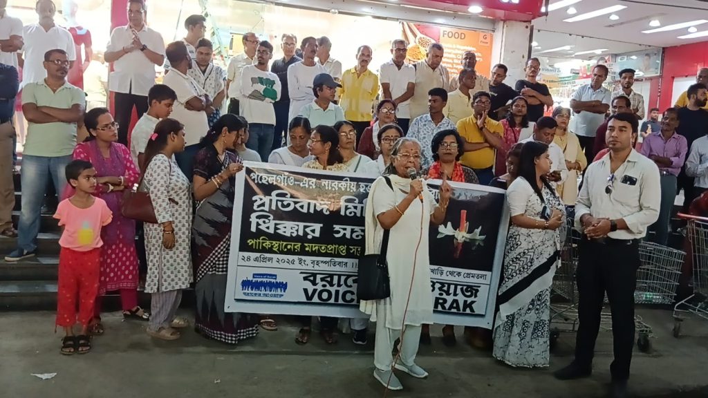 जम्मू-कश्मीर के पहलगाम में निर्दोष पर्यटकों पर हुए आतंकी हमले के विरोध में असम के सिलचर में “बराक की आवाज़” संगठन की ओर से एक भव्य विरोध और धिक्कार सभा का आयोजन किया गया। यह कार्यक्रम गुरुवार को सिलचर नगर निगम क्षेत्र के गोलदिघी चौक पर आयोजित हुआ, जिसमें हज़ारों की संख्या में महिला और पुरुषों ने भाग लिया।