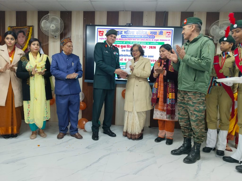 गया जी। गौतम बुद्ध महिला कॉलेज में स्वामी विवेकानंद की 164वीं जयंती पर आयोजित राष्ट्रीय युवा दिवस समारोह 2026 के तहत कॉलेज की एनएसएस इकाई एवं एनसीसी इकाई के संयुक्त तत्त्वावधान में एक दिवसीय व्याख्यान एवं भाषण प्रतियोगिता-सह-सांस्कृतिक कार्यक्रम का आयोजन हुआ। कार्यक्रम का संयोजन एनएसएस प्रोग्राम अॉफिसर डॉ कुमारी रश्मि प्रियदर्शनी एवं एनसीसी केयर टेकर अॉफिसर डॉ नगमा शादाब ने किया। कार्यक्रम का शुभारंभ मुख्य अतिथि एनसीसी 6 बिहार बटालियन के कमांडिंग अॉफिसर कर्नल पंकज कुमार उपाध्याय, मुख्य वक्ता डॉ राम सिंहासन सिंह, पूर्व प्रधानाचार्य, राम लखन सिंह यादव कॉलेज, विशिष्ट अतिथि सूबेदार मेजर विक्रम सिंह, जीसीआई सुप्रिया रंजन, प्रधानाचार्य डॉ सीमा पटेल सहित सभी अतिथियों ने दीप प्रज्ज्वलित करके किया। प्रधानाचार्या सहित सभी अतिथियों का स्वागत पुष्पगुच्छ तथा मेमेंटो अॉफ अॉनर प्रदान करके किया गया। प्रधानाचार्या डॉ पटेल ने डॉ रश्मि और डॉ नगमा को भी स्मृति चिह्न प्रदान करते हुए राष्ट्रीय युवा दिवस पर एक अविस्मरणीय कार्यक्रम आयोजित करने के लिए हार्दिक शुभकामनाएं दीं।