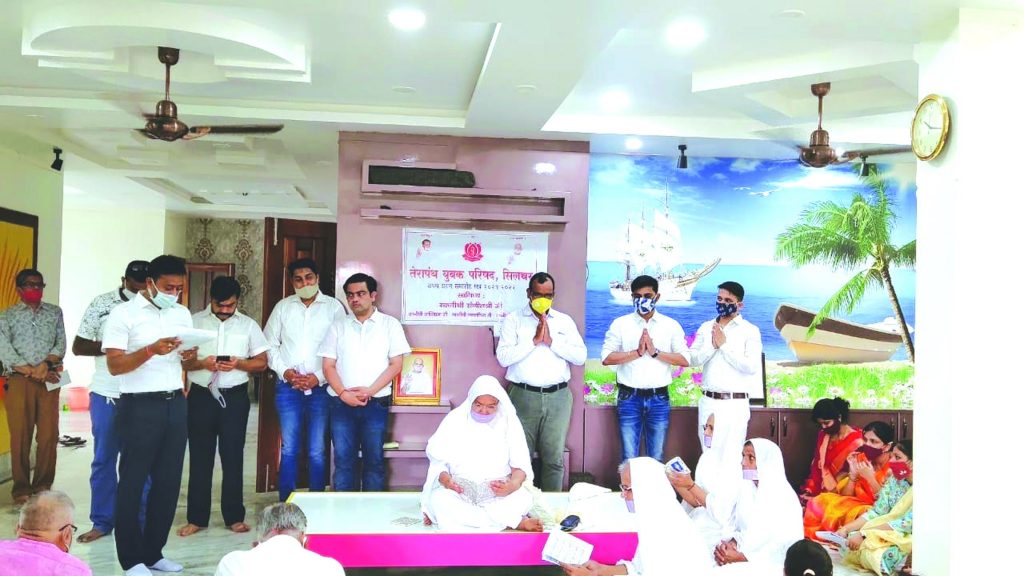 साध्वीश्री संगीतश्री जी ठाणा चार के सान्निध्य में तेरापंथ युवक परिषद, शिलचर सत्र 2021-22 का अध्यक्ष व पदाधिकारियों का शपथ ग्रहण समारोह कोविड प्रोटोकॉल को ध्यान में रखते हुए सानन्द सम्पन्न हुआ। भूतपूर्व अध्यक्ष मूलचन्द सांड ने नवनिर्वाचित अध्यक्ष पंकज नाहर को शपथ दिलाई तथा अध्यक्ष पंकज नाहर ने अपने पदाधिकारियों को शपथ दिलाई।