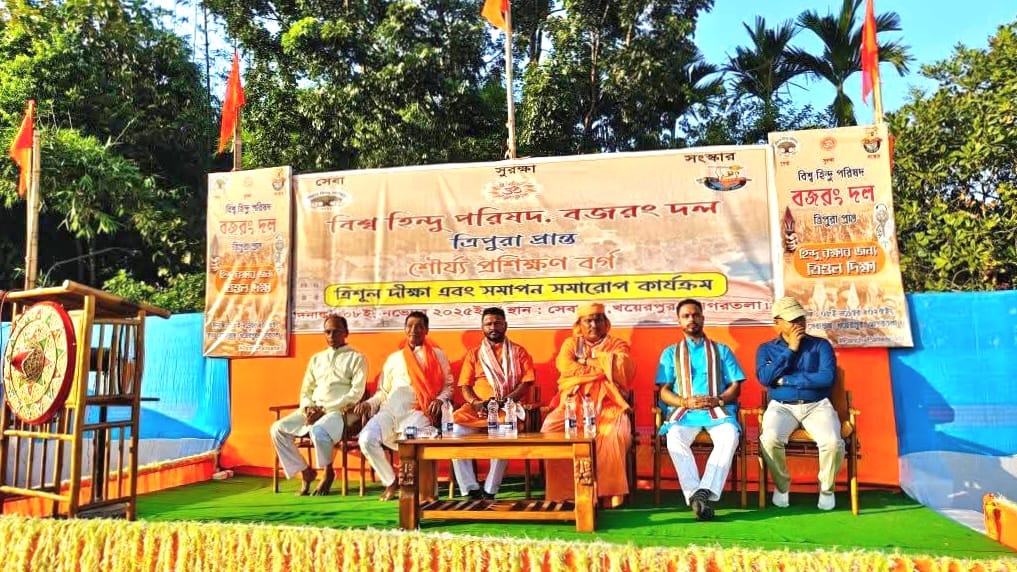 विश्व हिंदू परिषद, त्रिपुरा प्रांत के पश्चिम त्रिपुरा जिले स्थित सेवाधाम खेयरपुर में आयोजित बजरंग दल शौर्य प्रशिक्षण वर्ग एवं त्रिशूल दीक्षा कार्यक्रम गरिमामय वातावरण में सम्पन्न हुआ। इस अवसर पर त्रिपुरा सहित पूर्वोत्तर भारत के अनेक जिलों से युवा कार्यकर्ताओं ने भाग लिया।