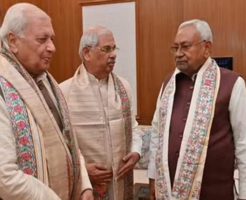 अनिल मिश्र/पटना, 31 दिसंबर: दिल्ली से पटना पहुंचते हीं मुख्यमंत्री नीतीश राज्यपाल आरिफ मोहम्मद खान से मिलने राजभवन पहुंचे। जहां मुख्यमंत्री ने अंगवस्त्र भेंट कर उनका स्वागत किया। वहीं राज्यपाल ने भी उनका स्वागत किया और अंगवस्त्र और स्मृति चिन्ह से किए। इस दौरान पूर्व राज्यपाल राजेंद्र विश्वनाथ अर्लेकर भी मौजूद रहे।इसके बाद मुख्यमंत्री एयरपोर्ट पहुंचे। जहां स्टेट हैंगर पर आयोजित पूर्व राज्यपाल राजेन्द्र विश्वनाथ आर्लेकर के विदाई समारोह में शामिल हुए। इस अवसर पर मुख्यमंत्री ने पूर्व राज्यपाल को पुष्प गुच्छ भेंटकर सप्रेम विदा किया और नई जिम्मेवारियों के लिए शुभकामनाएं दी।