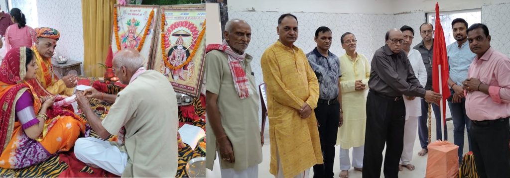दुमदुमा प्रेरणा भारती गोरखनाथ गुप्ता 16अक्टूबर:महाराजा अग्रसेन सेवा समिति के सौजन्य से अग्रकुल शिरोमणि महाराजा अग्रसेन जी की पावन जयंती के अवसर पर आश्विन शुक्ल एकम अर्थात १५ अक्टूबर २०२३ रविवार को मारवाड़ी पंचायती भवन में धार्मिक रीति रिवाजों के साथ महाराजा अग्रसेन जी एवं कुलदेवी माता महालक्ष्मी जी की पूजा अर्चना का आयोजन किया गया । महाराजा अग्रसेन सेवा समिति के संस्थापक अध्यक्ष दिनेश गोयल ने अपनी धर्मपत्नी सुनीता गोयल के साथ पंडित चिरंजी लाल सुरोलिया के आचार्यत्व में अग्रवाल समाज की ओर से पूजा संपन्न करवाईं। इससे पहले मारवाड़ी सम्मेलन की दुमदुमा शाखा के अध्यक्ष महावीर मोदी ने अग्रध्वज फहराया वहीं अर्जुन लाल अग्रवाल, दिनेश गोयल, भंवरलाल गिनोड़िया, दीपक पटवारी, रवि गोयल, बजरंग बंसल एवं हर्ष बेरीवाल ने दीप प्रज्ज्वलित किया । इस अवसर पर काफी संख्या में अग्रवाल समुदाय की महिलाएं एवं अग्र समाजबंधुगण उपस्थित थे। उल्लेखनीय है कि आगामी 29 अक्टूबर को भव्य समारोह भी आयोजित किया जाएगा, इस अवसर पर मेधावी छात्र छात्राओं का सम्मान, समाज के बुजुर्गो का सम्मान, विभिन्न प्रतियोगिताओं के विजेताओं को पुरस्कार प्रदान, सांस्कृतिक कार्यक्रम एवं प्रीति भोज इत्यादि का आयोजन किया जाएगा । दुमदुमा में सन् 2015 में अग्रवाल समुदाय के लोगों को एकजुट करने, आपस में समन्वय स्थापित करने एवं अग्रवाल समुदाय के रीति रिवाजों के संरक्षण सहित महाराजा अग्रसेन के सिध्दांतों के प्रचार-प्रसार करने के बहु उद्देश्यों को सामने रखते हुए महाराजा अग्रसेन सेवा समिति नामकरण से उक्त सामाजिक संस्था का गठन किया गया था एवं तभी से हर वर्ष अग्रसेन जयंती का पालन भव्य रूप से विभिन्न कार्यक्रमों के साथ आयोजित किया जाता रहा है । इस वर्ष भी विभिन्न प्रतियोगिताओं के अलावा निःशुल्क चिकित्सा शिविर आयोजित किए जा चुके हैं एवं अभी भी कुछ प्रतियोगिताएं आयोजित होने वाली है । आज के समारोह के अवसर पर वरिष्ठ समाजसेवी जयनारायण बंसल, रामधन अग्रवाल, भवानी मंढ़ानिया, विजय धानुका, निर्मल बाजारी, पीयूष गोयल, सीमा अग्रवाल, मौसमी खेमका, अनु मोदी, रिंकी पटवारी, सुमन अग्रवाल, मीना अग्रवाल, प्रिया केजरीवाल, रचना बेरीवाल, अर्चना धानुका, इन्दु बेरीवाल, चंदा अग्रवाल सहित काफी संख्या में अग्रवाल समुदाय के लोगों ने शिरकत की ।