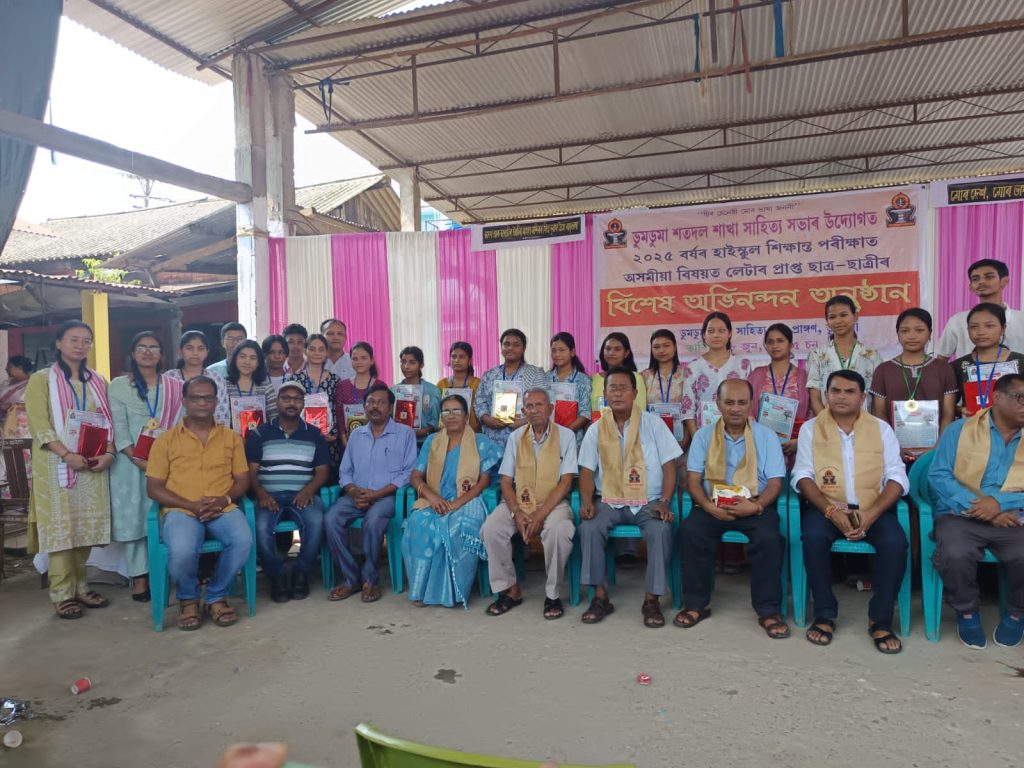 वृहत्तर दुमदुमा अंचल के विभिन्न विद्यालयों से असमिया भाषा में लेटर अंक लाने वाले 76 छात्र – छात्राओं को दुमदुमा शतदल शाखा साहित्य सभा द्वारा अभिनन्दन किया गया । जानकारी के अनुसार असम राज्य विद्यालय परिषद ( सेबा ) के अधीन हाईस्कूल शिक्षांत परीक्षा में असमिया विषय में लेटर प्राप्त छात्र छात्राओं को शाखा के प्रेक्षागृह में रविवार को आयोजित एक विशेष अभिनंदन समारोह का आयोजन कर अभिनंदन किया गया । समारोह के प्रारंभ में दुमदुमा उच्चतर माध्यमिक बालिका विद्यालय की छात्राओं द्वारा प्रस्तुत किए गए गीत “চিৰ চেনেহী মোৰ ভাষা জননী” के साथ हुआ । समारोह की अध्यक्षता शतदल शाखा साहित्य सभा के अध्यक्ष देवेन डेका ने की। इस अवसर पर तिनसुकिया जिला साहित्य सभा के अध्यक्ष लम्बेश्वर चेतिया, रूपाई हाईस्कूल के पूर्व प्रधानाचार्य प्रकाश दत्त और रिफ्लेक्शन सीनियर सेकेंडरी हाईस्कूल की शिक्षिका किरणमयी बोरा ने विशिष्ट अतिथि के रूप में उपस्थिति दर्ज कराई और अपने विचार रखे। समारोह का संचालन शाखा सचिव नित्यानंद दास एवं सह सचिव जोनाली शैकिया डेका ने किया। दुमदुमा – रूपाई क्षेत्र के विभिन्न विद्यालयों के कुल 76 विद्यार्थियों को एक-एक मेडल, अभिनंदन पत्र, पुस्तक और कलम प्रदान कर सम्मानित किया गया। दुमदुमा डॉन बॉक्स स्कूल के दो छात्र-छात्राएं नवजीत फूलकोंवर और लियुचिन्ना गोगोई को असमिया विषय में 99% अंक प्राप्त करने के लिए विशेष रूप से सम्मानित किया गया।