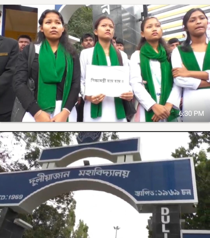 दुलियाजान महाविद्यालय में कल उस समय माहौल तनावपूर्ण हो गया जब महाविद्यालय के छात्र समाज के नेतृत्व में छात्रों ने जोरदार विरोध प्रदर्शन किया। यह प्रदर्शन राज्य के शिक्षा मंत्री रनोज पेगू के खिलाफ किया गया।