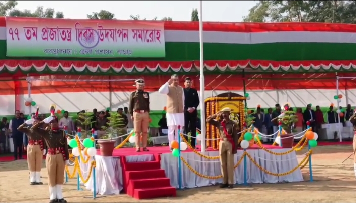 शिलचर, 26 जनवरी: देशभर के साथ कदम से कदम मिलाते हुए कछार जिला मुख्यालय शिलचर में भी 77वां गणतंत्र दिवस पूरे सम्मान, गरिमा और देशभक्ति के उल्लास के साथ मनाया गया। जिला प्रशासन के तत्वावधान में सोमवार को शिलचर के पुलिस पाड़ा ग्राउंड में मुख्य समारोह का आयोजन किया गया।