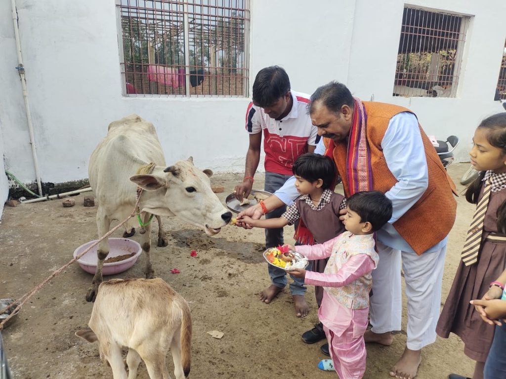 रायपुर छत्तीसगढ़, 30 नवंबर: पिछले 27 नवम्बर को छत्तीसगढ़ महासमुंद के ग्राम जोगीदादर श्री गोविंद गौशाला में विश्व हिन्दू परिषद गोरक्षा केंद्रीय मंत्री एवं पूर्वोत्तर असम, बंगाल, उड़ीसा के प्रभारी उमेश चंद्र पोरवाल जी उड़ीसा के बरगड़ जिला के राजेन्द्रपुर गौशाला से जोगीदादर गौशाला पहुंचे। वहीँ पर भिलाई से डॉ – वैभव तिवारी डीन फैकेल्टी ऑफ फार्मास्यूटिकल्स साइंसेज श्री शंकराचार्य प्रोफेशनल यूनिवर्सिटी भिलाई, छत्तीसगढ़ पहुँचे। दोनों अतिथियों ने श्री गोविन्द गौशाला समिति के पदाधिकारियों के साथ बैठकर गौशाला को स्वावलंबी और रोजगार युक्त बनाने पर वार्ता की। दोनों अतिथियों ने गाय का पूजन-आरती कर गौग्रास खिलाकर गौशाला की व्यवस्था देखी, जहां गौशाला में गोमूत्र अर्क और फसल रक्षक कीट नियंत्रक एवं गोबर से केंचुआ खाद का अच्छा निर्माण हो रहा है, साथ ही गोबर से बनने वाले अनेक गो उत्पाद निर्माण कर क्षेत्र के लोगों को रोजगार युक्त बना सकती है गौशाला। ऐसा डॉक्टर वैभव तिवारी जी ने कहा कि देश का पहला राज्य छत्तीसगढ़ है, जहां सरकार किसानों गोपालकों का गोबर और गोमूत्र भी खरीदती है। पोरवाल जी ने कहा गौमाता जहां रहती है, वहां सकारात्मक ऊर्जा निर्माण होती है। सुखी जीवन, उपजाऊ धरती, भूजल पूर्ति, जलवायु संतुलन ,पौष्टिक आहार, प्रभावी औषधि, सात्विक चेतन धार्मिक गति ज्ञान एवं बुद्धि बल एवं स्वास्थ्य ,समृद्ध-किसान, सशक्त राष्ट्र के निर्माण में गाय का बहुत बड़ा योगदान है। समस्याएं अनेक, समाधान एक हमारी प्रिय गौमाता, ऐसा राष्ट्रीय स्वयंसेवक संघ के द्वितीय सरसंघचालक माधवराव सदाशिवराव गोलवलकर श्री गुरु जी कहा करते थे जो आज सत्य और यथार्थ हो रहा है । श्री पोरवाल जी ने बताया कि छत्तीसगढ़ देश का पहला राज्य जहां की सरकार गोबर एवं गोमूत्र को खरीदती है ऐसे राज्य की सभी गौशालाओं को रोजगार युक्त स्वावलंबी बनाया जा सकता है। गौशाला अध्यक्ष सखाराम चौधरी ने दोनों अतिथियों का सम्मान किया। गौशाला व्यवस्थापक नित्यानंद चौधरी ने आभार व्यक्त किया एवं कहा आपके मार्गदर्शन की जरूरत है गौशाला को उसी से हम गौशाला केंद्रित दस गांव को जैविक ग्राम बनाने का संकल्प लेते हैं।