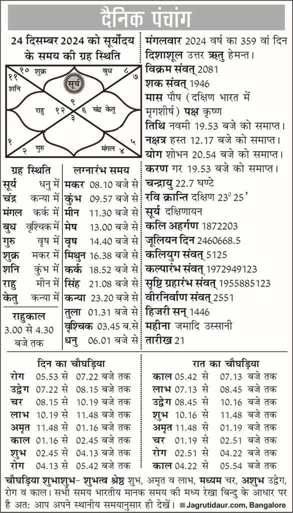 पंचांग: 24 दिसम्बर, 2024
