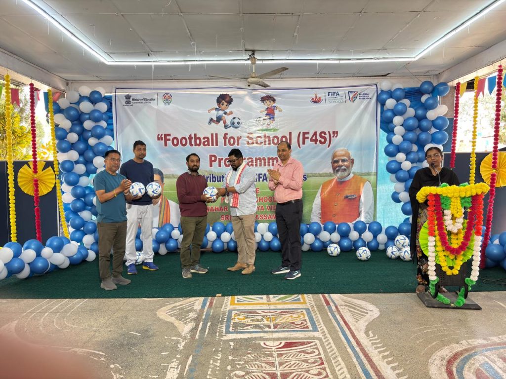 श्रीभूमि में ‘फुटबॉल फॉर स्कूल’ कार्यक्रम के तहत फुटबॉल वितरण समारोह आयोजित