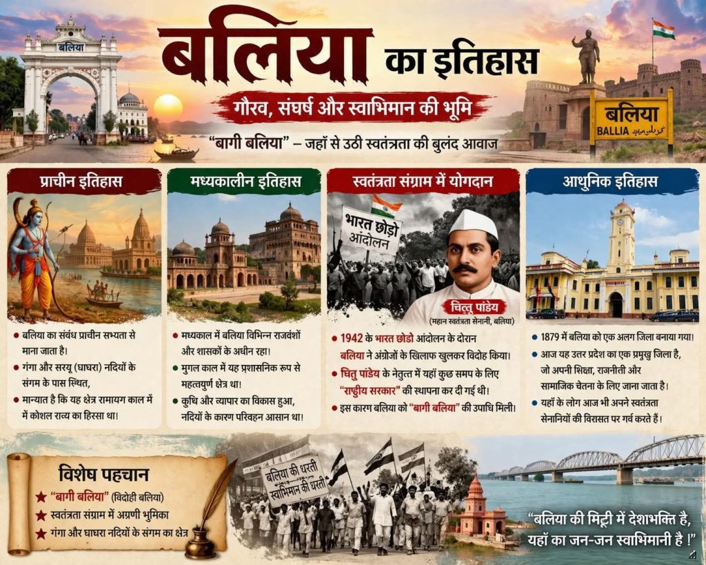 सार:बलिया सिर्फ एक जिला नहीं, बल्कि देशभक्ति, संघर्ष और स्वाभिमान की पहचान है।