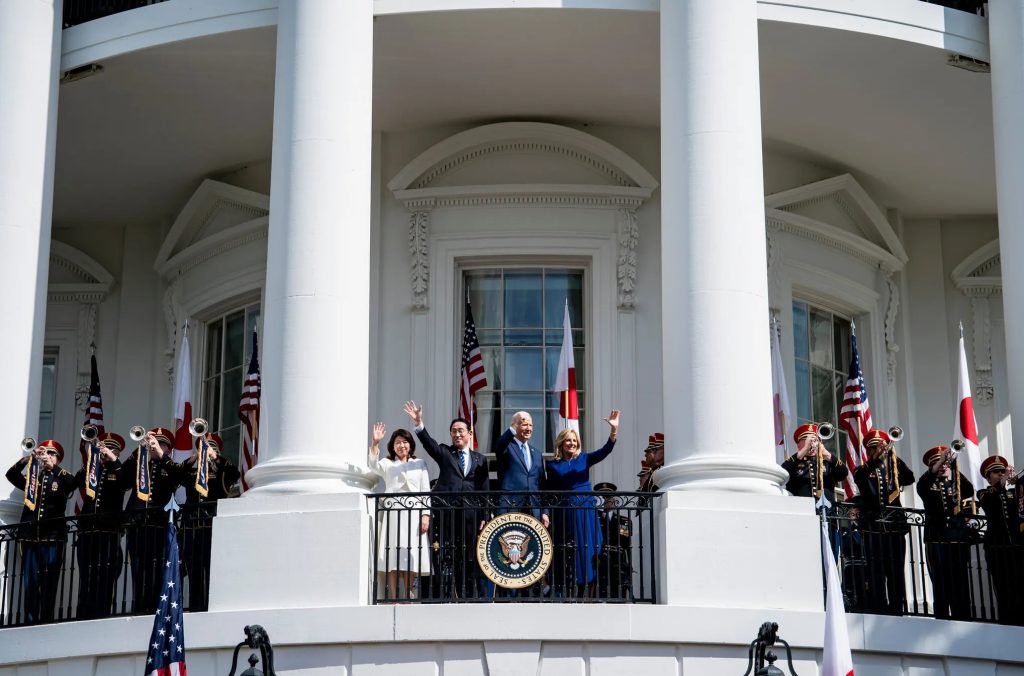 द न्यूयॉर्क टाइम्स अखबार की रिपोर्ट के अनुसार, जापान के प्रधानमंत्री के सम्मान में आयोजित भव्य समारोह में राष्ट्रपति बाइडेन ने कहा कि संयुक्त राज्य अमेरिका और जापान ऑस्ट्रेलिया के साथ एक विस्तारित रक्षा चक्रव्यूह बनाएंगे। ब्रिटेन के साथ त्रिस्तरीय सैन्य अभ्यास में हिस्सा लेंगे। जापान को अमेरिकी नेतृत्व में शामिल होने के तरीके तलाशेंगे। ऑस्ट्रेलिया और न्यूजीलैंड के साथ गठबंधन किया जाएगा।