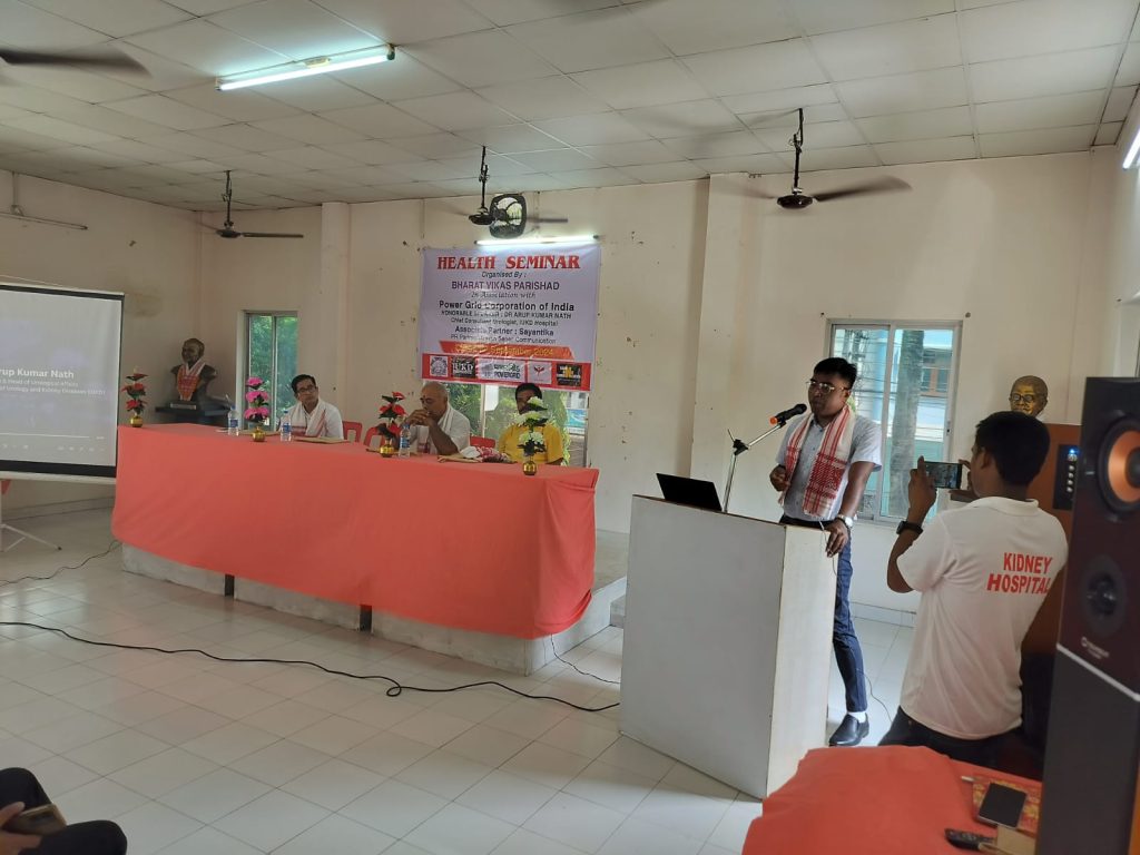 गुवाहाटी 11 सितंबर: भारत विकास परिषद मध्य गुवाहाटी शाखा द्वारा आयोजित कार्यक्रम का शुभारंभ विष्णुपुर सेवा केंद्र में भारत माता की तस्वीर पर फूल माला अर्पित करके दीप प्रज्वलित करके किया गया। जिसमें एक हेल्थ चेकअप कैंप का आयोजन रविवार को सुबह 11:00 से 2:00 बजे तक किया गया। इस कार्यक्रम में चीफ स्पीकर डॉक्टर अरुण कुमार, किडनी स्पेशलिस्ट सोनापुर से, प्रोफेसर डॉक्टर जी डी शर्मा मेघालय से, डॉक्टर होमेश्वर कलिता गुवाहाटी से उपस्थित थे।
