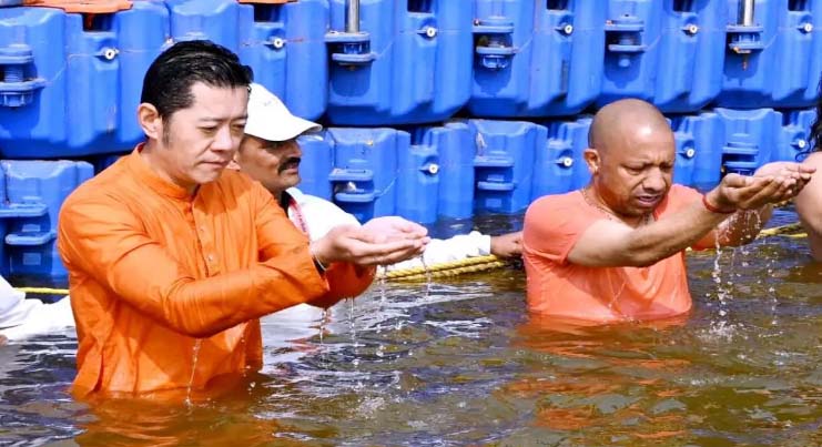 लखनऊ. बसंत पंचमी के अमृत स्नान के अगले दिन उत्तर प्रदेश के मुख्यमंत्री योगी आदित्यनाथ फिर से प्रयागराज के महाकुंभ में पहुंचे हैं. सीएम योगी आज लखनऊ में भूटान के राजा जिग्मे खेसर नामग्याल वांगचुक का स्वागत किया. इसके बाद वह उन्हें प्रयागराज ले गए, जहां उनके साथ उनका डेलीगेशन भी था. यहां उन्होंने राजा वांगचुक के साथ त्रिवेणी संगम में स्नान किया. इसके बाद उन्होंने वट वृक्ष के दर्शन किए. इस दौरान भूटान के राजा ने यहां पूजा-पाठ भी किया.