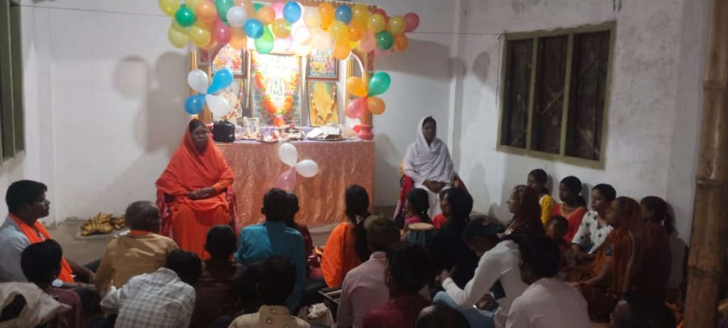 शिलचर 27 अगस्त: मानव उत्थान सेवा समिति शिलचर मानव धर्म आश्रम के अंतर्गत शाखा नूतन रामनगर आश्रम में 26 अगस्त 2024 को आश्रम प्रभारी महत्मा हिमानी बाईजी एंव पार्वती बाईजी के दिशानिर्देशन में बड़े ही धुमधाम एंव हर्षोल्लास से श्रीकृष्ण जन्माष्टमी महोत्सव मनाया गया।