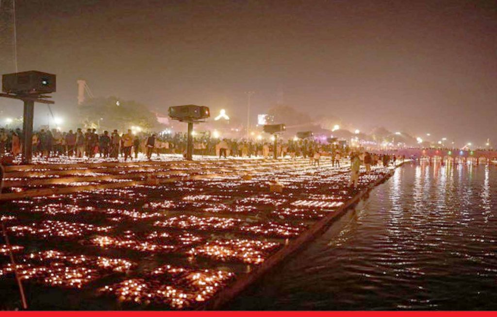 अयोध्या. कल दीपावली है औैर आज पूरी अयोध्या दीपोत्सव के दाैरान जय सिया राम के उद्घघोषों से गूंज उठी। दीपोत्सव के दाैरान मुख्यमंत्री योगी आदित्यनाथ सहित कई नेताओं सहित कई देशों के राजदूत पहुंचे। अयोध्या में दीपोत्सव में 24 लाख से ज्यादा दिए अलग-अलग घाटों पर जलाए गए। 22 लाख से अधिक जलाए गए जोकि नया विश्व रिकार्ड है। सीएम योगी आदित्यनाथ ने सरयू नदी पर आरती की। सरयू नदी पर दीपोत्सव कार्यक्रम के दौरान यहां पर लेजर शो के जरिए रामलीला का आयोजन किया गया। 24 लाख दीपकों में 1 लाख 5 हजार लीटर सरसों तेल का इस्तेमाल हुआ।