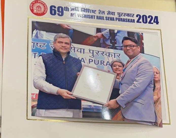 वरिष्ठ मंडल यांत्रिक इंजीनियर (समन्वय) पूर्व रेलवे, सियालदह मंडल रोहित रंजन को रेलवे बोर्ड का “अति विशिष्ट रेल सेवा पुरस्कार-2024” शनिवार दिनांक 21 दिसम्बर 2024 को भारत मंडपम, नई दिल्ली में रेल मंत्री भारत सरकार के कर कमलों से समारोह पूर्वक प्रदान किया गया। श्री रोहित रंजन की इस उपलब्धि पर सम्पूर्ण पूर्व रेलवे के रेल सदस्य गौरवान्वित महसूस कर रहे हैं, और सभी में हर्ष की लहर व्याप्त है।