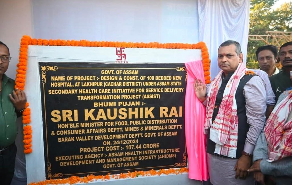 चंद्रशेखर ग्वाला लखीपुर, 24 दिसंबर: असम सरकार के बराक घाटी विकास विभाग, खान एवं खनिज विभाग, और खाद्य सुरक्षा विभाग के मंत्री कौशिक राय ने मंगलवार को लखीपुर सम-जिला क्षेत्र में 100 विस्तरीय अत्याधुनिक अस्पताल के निर्माण का भूमि पूजन कर इसकी आधारशिला रखी।