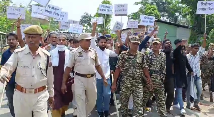 वक्फ विधेयक के विरोध में शिलचर के धनेहरी में जुलूस, तनाव का माहौल