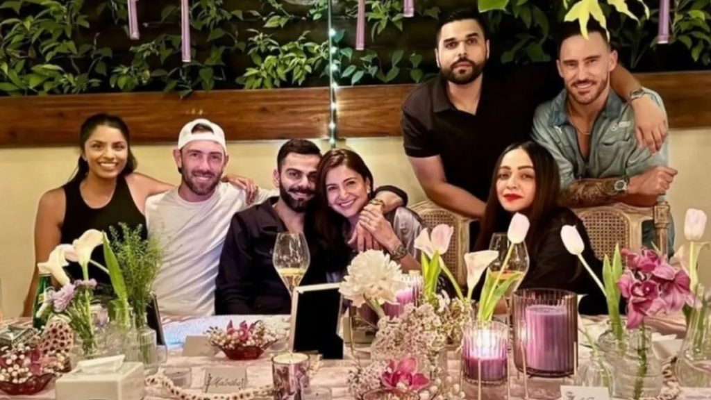 विराट कोहली ने बेंगलुरु के एक हाई स्केल रेस्टोरेंट में अनुष्का का जन्मदिन मनाया। इस कार्ड पर सेलिब्रेटिंग अनुष्का लिखा हुआ था। विराट कोहली ने अपनी इंस्टाग्राम स्टोरी पर कार्ड की फोटो शेयर करते हुए लिखा, “शेफ, स्वादिष्ट भोजन के लिए धन्यवाद।” फाफ डुप्लेसिस ने डिनर टेबल पर सभी की एक साथ तस्वीर शेयर की। इसमें विराट अनुष्का के कंधे पर हाथ रखकर बैठे हुए हैं। दोनों बेहद खुश नजर आ रहे हैं।