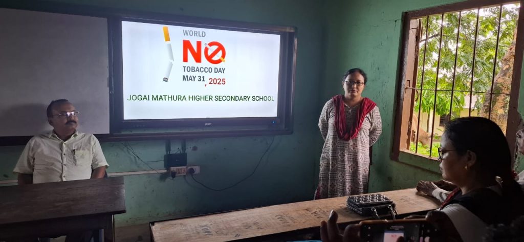 विश्व तंबाकू निषेध दिवस के अवसर पर लखीपुर जिले के बिन्नाकांदी घाट स्थित जोगाई मथुरा उच्चतर माध्यमिक विद्यालय में एक विशेष जनजागरूकता कार्यक्रम का आयोजन किया गया। कार्यक्रम की अध्यक्षता विद्यालय के प्रिंसिपल श्री शिल्पजीत पाल ने की।