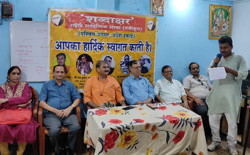 11, काशीपुर रोड, कोलकाता-2, के काव्य कक्ष में रविवार की संध्या को ‘शब्दाक्षर’ पश्चिम बंगाल इकाई का सरस काव्य समारोह सोल्लास संपन्न हुआ। काव्य-आयोजन में स्थापित व नवोदित रचनाकारों ने एक से बढ़ कर एक सराहनीय रचनाएं सुना कर उपस्थित श्रोताओं को भावविभोर कर दिया। कार्यक्रम की अध्यक्षता राष्ट्रीय कोषाध्यक्ष ‘शब्दाक्षर’ दयाशंकर मिश्रा ने की तथा संचालन ‘शब्दाक्षर’ प्रदेश संगठन मंत्री ‘शब्दाक्षर’ नन्दू बिहारी ने किया। ‘शब्दाक्षर’ के राष्ट्रीय अध्यक्ष रवि प्रताप सिंह दिग्दर्शक व प्रधान अतिथि के रूप में मंचासीन थे। कवि धर्मदेव सिंह व विश्वजीत शर्मा ‘सागर’ मुख्य अतिथिद्वय व कृष्ण कुमार दूबे व प्रणति ठाकुर विशिष्ट अतिथिद्वय के रूप में उपस्थित थे। राष्ट्रीय सलाहकार तारक दत्त सिंह की विशेष उपस्थिति रही। युवा गीतकार आलोक चौधरी की सरस्वती वंदना से काव्य अनुष्ठान का विधिवत शुभारंभ हुआ। बहुविधा पूर्ण काव्य आयोजन में राष्ट्रीय उपाध्यक्ष कृष्ण कुमार दुबे रचना पढ़ी-