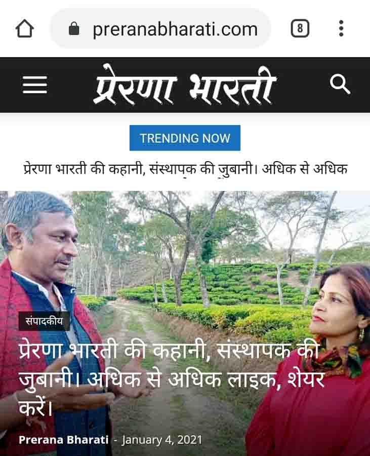 यूट्यूब चैनल शिवा म्यूजिक शिलचर के द्वारा प्रेरणा भारती हिंदी समाचार पत्र के बारे में एक वीडियो फिल्म की शूटिंग की गई थी। जिसमें प्रेरणा भारती के संस्थापक दिलीप कुमार का इंटरव्यू है। आज वो वीडियो इंटरव्यू शिवा म्यूजिक के यूट्यूब चैनल पर रिलीज कर दिया गया।