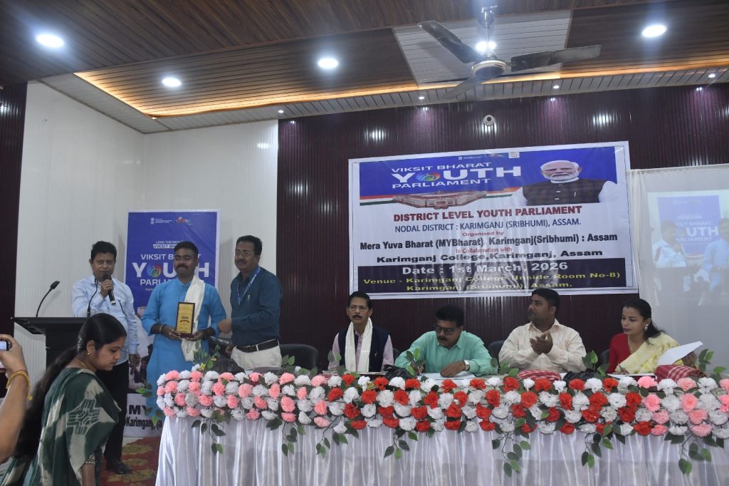 श्रीभूमि, 1 मार्च 2026: रविवार को श्रीभूमि शहर के करीमगंज कॉलेज में जिला स्तरीय युवा संसद कार्यक्रम का आयोजन किया गया। कार्यक्रम का शुभारंभ ‘मेरा युवा भारत’ के उप निदेशक महबूब आलम लस्कर द्वारा संचालित परिचयात्मक सत्र से हुआ। पूर्व राज्यसभा सांसद मिशन रंजन दास मुख्य अतिथि के रूप में उपस्थित थे।रणजीत बिस्वास, संजय कुमार शिल, डॉ. सुभाशीष रॉय चौधरी, देबब्रता दास और मंजुरी दास सहित निर्णायक मंडल के सदस्यों ने भाग लिया। कार्यक्रम का शुभारंभ स्वामी विवेकानंद के चित्र पर दीप प्रज्वलन और पुष्पांजलि के साथ हुआ।महबूब आलम लस्कर ने सभी प्रतिभागियों का स्वागत किया और युवा संसद कार्यक्रम के उद्देश्य और महत्व पर प्रकाश डालते हुए प्रतिभागियों से लोकतांत्रिक चर्चाओं में सक्रिय रूप से भाग लेने का आग्रह किया। इसके बाद प्रतियोगिता शुरू हुई, जिसमें श्रीभूमि और हैलाकांडी जिलों के विभिन्न कॉलेजों के छात्रों ने भाग लिया। इस वर्ष का विषय था “भारत में आपातकाल के 50 वर्ष: लोकतंत्र के लिए सबक”।