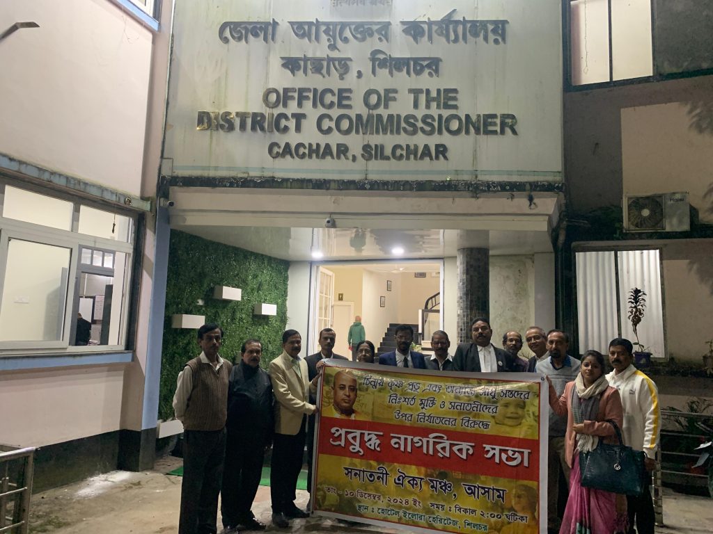 सभा में कई प्रबुद्ध व्यक्तियों ने अपने विचार व्यक्त किए। इनमें प्रमुख रूप से कवि और साहित्यकार अतीन दास, चिकित्सक संभुद्ध धर, समाजसेवी रुद्र नारायण गुप्ता, मानस भट्टाचार्य, मधुमिता नाग, अभ्रजीत चक्रवर्ती, वकील तुहीना शर्मा, सौमेन चौधरी, चिकित्सक रंजना धर और दिलीप कुमार दास शामिल थे। इनके अलावा बासुदेव शर्मा, वकील शांतनु नायक, शिक्षाविद अभिजीत नाथ, शिक्षक तमाल चक्रवर्ती, और समाजसेवी अजय पाल जैसे अन्य गणमान्य व्यक्ति भी उपस्थित थे।का र्यक्रम में विशेष अतिथि के रूप में आशोक देवाचार्य महाराजजी उपस्थित थे। वह विश्व हिंदू परिषद के पूर्वोत्तर प्रांत के धर्म जागरण प्रमुख रह चुके हैं और वर्तमान में मथुरा, उत्तर प्रदेश में अपनी सेवाएं दे रहे हैं। उन्होंने सभा को संबोधित करते हुए बांग्लादेश के हिंदू अल्पसंख्यकों की स्थिति को चिंताजनक बताया और इसे लेकर समाज को जागरूक करने का आह्वान किया। सभा के अंत में, एक ज्ञापन जिला उपायुक्त मृदुल कुमार यादव को सौंपा गया। इस ज्ञापन में बांग्लादेश में हो रहे अल्पसंख्यक उत्पीड़न और सन्यासी चिन्मय स्वामी की रिहाई की मांगों को संयुक्त राष्ट्र और अंतरराष्ट्रीय मानवाधिकार संगठनों तक पहुंचाने का आग्रह किया गया। ज्ञापन सौंपने के दौरान प्रमुख चिकित्सक सुब्रत नंदी, विधु भूषण डे, वकील मृगांक भट्टाचार्य, धर्मानंद देव, वकील राजीव कुमार नाथ, सौमित्र दत्त राय, और पल्लविता शर्मा जैसे प्रतिष्ठित लोग उपस्थित रहे। सभा को अल्पसंख्यकों के अधिकारों की रक्षा और धार्मिक स्वतंत्रता सुनिश्चित करने की दिशा में एक महत्वपूर्ण कदम माना जा रहा है। सनातनी एक्य मंच के आयोजकों ने भविष्य में भी इसी प्रकार के आयोजनों और आंदोलन के माध्यम से अल्पसंख्यकों के अधिकारों की रक्षा करने की प्रतिबद्धता व्यक्त की। मंच के अनुसार, यह आंदोलन समाज में सद्भाव और समानता सुनिश्चित करने का एक प्रयास है।सभा में वक्ताओं ने इस बात पर भी जोर दिया कि बांग्लादेश में हिंदुओं और अन्य अल्पसंख्यकों पर हो रहे अत्याचार को लेकर भारत सरकार को कूटनीतिक दबाव बनाना चाहिए। इसके साथ ही, अंतरराष्ट्रीय मानवाधिकार संगठनों और संयुक्त राष्ट्र को इस मुद्दे को लेकर तुरंत कार्रवाई करनी चाहिए।यह सभा न केवल एक मांग पत्र तक सीमित रही, बल्कि इसे समाज में जागरूकता फैलाने का एक मंच भी माना गया। वक्ताओं ने इस बात पर बल दिया कि ऐसे मामलों पर केवल सरकार पर निर्भर रहने के बजाय आम लोगों को भी आगे आकर अपनी आवाज बुलंद करनी चाहिए।इस आयोजन ने बांग्लादेश में अल्पसंख्यकों की स्थिति और धार्मिक स्वतंत्रता के महत्व को लेकर एक नई बहस छेड़ दी है। सनातनी एक्य मंच ने अपनी इस पहल से एक बार फिर यह साबित कर दिया कि समाज में धार्मिक