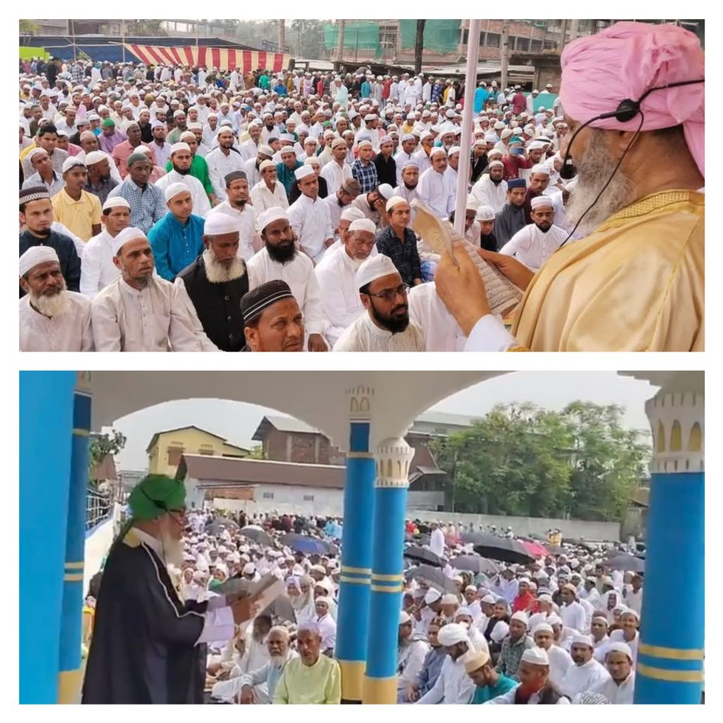 - दक्षिण ईदगाह (बस स्टैंड परिसर): इस ईदगाह में लंबे समय बाद नमाज अदा की गई, क्योंकि पिछले कुछ वर्षों से यहां मरम्मत कार्य चल रहा था। आज यहां फिर से ईद की नमाज होने से मुस्लिम समुदाय में अपार खुशी देखी गई। नमाज का नेतृत्व नॉर्थ ईस्ट अहले सुन्नत वल जमात के प्रमुख सलाहकार मौलाना सारिमुल हक लस्कर ने किया। नमाज के बाद विश्व शांति और समृद्धि के लिए विशेष दुआ की गई।