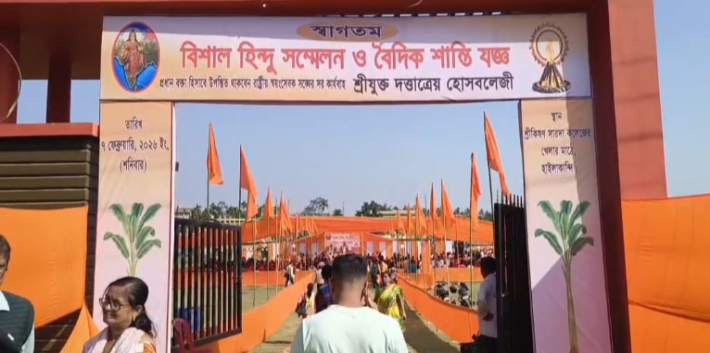 राष्ट्रीय स्वयंसेवक संघ के शताब्दी वर्ष के उपलक्ष्य में देशभर में चल रहे विभिन्न कार्यक्रमों के साथ तालमेल बिठाते हुए आज हाइलाकांदी में एक विशाल हिंदू सम्मेलन का आयोजन किया गया। जिले के श्रीकृष्ण सारदा कॉलेज के खेल मैदान में आयोजित इस भव्य सम्मेलन में भारी संख्या में लोगों की उपस्थिति से उत्सव का माहौल बन गया। इस विशेष कार्यक्रम में राष्ट्रीय स्वयंसेवक संघ के सर-कार्यवाह (केंद्रीय महासचिव) दत्तात्रेय होसबले मुख्य वक्ता के रूप में उपस्थित रहे। उनकी उपस्थिति से स्वयंसेवकों और समर्थकों में विशेष उत्साह और उमंग देखने को मिली।