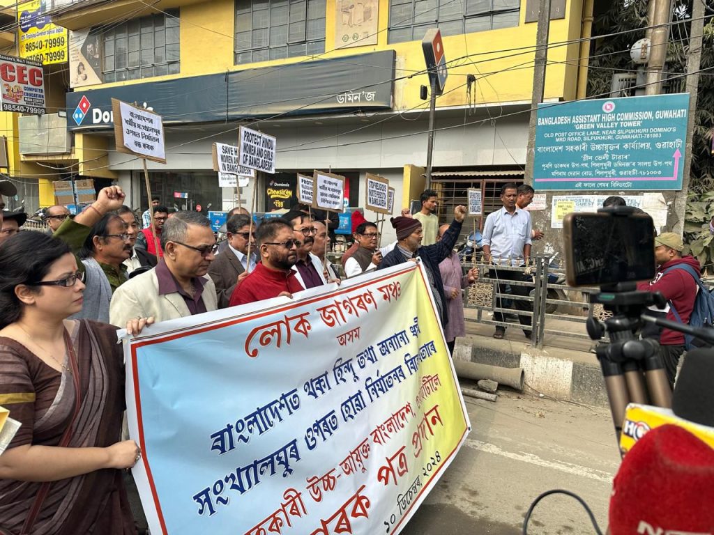 बांग्लादेश के सहायक उच्चायुक्त के गुवाहाटी कार्यालय में लोक जागरण मंच, असम द्वारा धरना