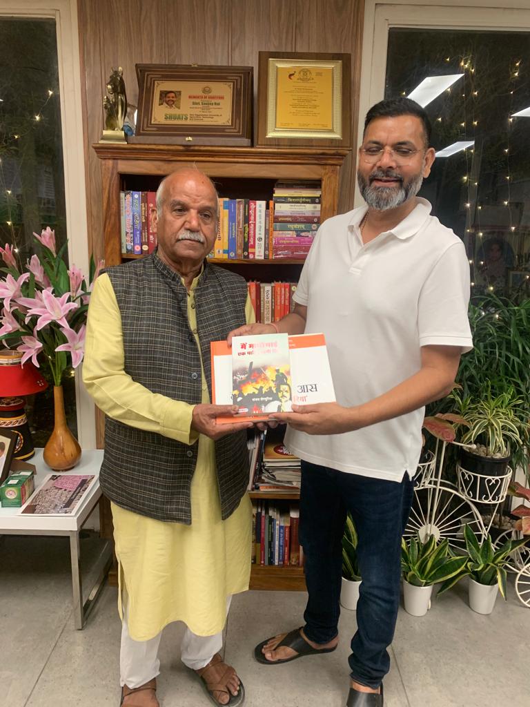 नई दिल्ली: सामाजिक उद्यमी संजय शेरपुरिया रविवार को राजधानी दिल्ली में पूर्वोत्तर क्षेत्र में राष्ट्रीय स्वयंसेवक संघ (आरएसएस) के वरिष्ठ प्रचारक राम सिंहजी को धार्मिक और सामाजिक मुद्दों पर अपनी कुछ किताबें भेंट करते हुए।