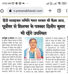 हिंदी सलाहकार समिति भारत सरकार की बैठक आज, पूर्वोत्तर से बैठक में शिलचर के पत्रकार दिलीप कुमार भी रहेंगे उपस्थित September 28, 2022 Read More »