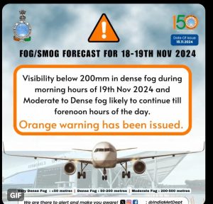 दिल्ली में अगले चार दिनों तक सुबह औऱ शाम छाया रहेगा कोहरा, कल के लिए ऑरेंज अलर्ट जारी November 19, 2024 Read More »