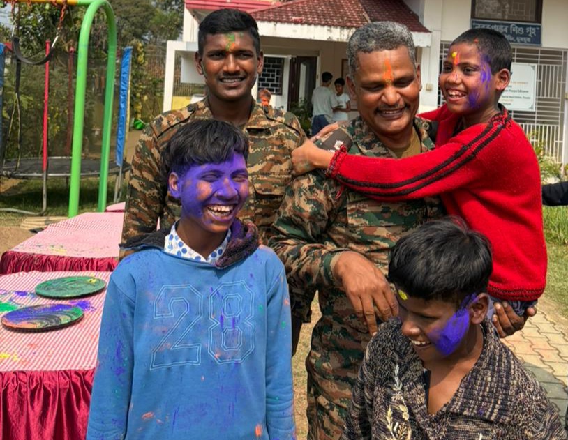 इंडियन आर्मी ने तिनसुकिया में नव रूपांतर चिल्ड्रन होम के बच्चों के साथ होली मनाई तिनसुकिया: 03 मार्च 2026 को, रेड शील्ड गनर्स ने, स्पीयर कॉर्प्स के अंडर, असम के रूपाई में चिल्ड्रन होम को चमकीले रंगों और दिल को छू लेने वाली मुस्कान से भर दिया, क्योंकि उन्होंने अपनी लगातार कम्युनिटी आउटरीच पहल के तहत वहां रहने वाले बच्चों के साथ रंगों का त्योहार मनाया। जब सैनिक और बच्चे एक साथ आए और न केवल रंगों और मिठाइयों से, बल्कि सच्चे प्यार और हंसी-मजाक से भी होली मनाई, तो “अनाथालय में खुशियों के रंग भर गए”। 8 से 17 साल के कुल 20 बच्चों ने पूरे जोश के साथ हिस्सा लिया, उनके उत्साह से पूरा परिसर जगमगा उठा। रंगों के बिखरने के साथ होली शुरू हुई, जो जल्द ही बेफिक्र मस्ती और खुशी भरी बातचीत के पलों में बदल गई। आर्मी के जवानों ने बच्चों के साथ अच्छा समय बिताया—खेलते हुए, बातें करते हुए, हिम्मत बढ़ाते हुए और सुनते हुए—यह पक्का करते हुए कि हर बच्चे को अहमियत महसूस हो और उसे अपनाया जा रहा हो। यह त्योहार प्यार और अपनेपन का प्रतीक बन गया, जहाँ यूनिफॉर्म चमकीले रंगों के साथ मिल जाती थी और दिल बिना किसी रुकावट के जुड़ जाते थे। बातचीत के दौरान, होली के एकता, उम्मीद और पॉजिटिविटी के त्योहार के महत्व को शेयर किया गया, जिससे मेलजोल और साथ रहने की वैल्यूज़ को मज़बूती मिली। सभी को मिठाइयाँ बाँटी गईं, जिससे दिन में मिठास आई और इंडियन आर्मी और लोकल कम्युनिटी के बीच का रिश्ता और मज़बूत हुआ। बच्चों की मुस्कान, हँसी और चमकते चेहरों ने होली का असली मतलब दिखाया—प्यार फैलाना, खुशियाँ बाँटना और एक बड़े परिवार की तरह साथ खड़े होना। इस पहल ने कम्युनिटी वेलफेयर, युवाओं से जुड़ाव और असम के लोगों के साथ भरोसे के रिश्ते को मज़बूत करने के लिए इंडियन आर्मी के पक्के कमिटमेंट को फिर से पक्का किया।