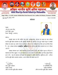 अखिल भारतीय कूर्मि क्षत्रिय महासभा ने सुरेंद्र प्रसाद सिंह का किया राष्ट्रीय सचिव पद पर मनोनयन February 13, 2026 Read More »