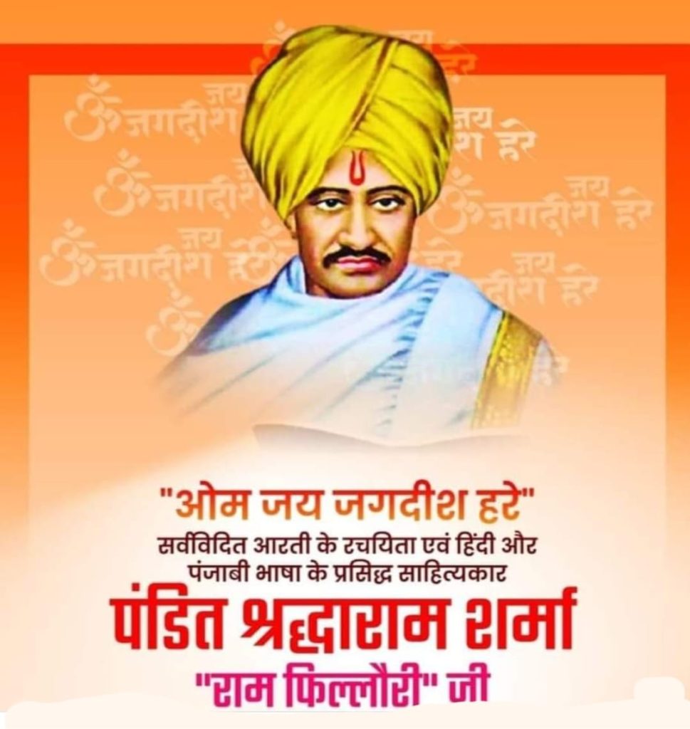 पंडित श्रद्धाराम शर्मा का जन्म 30 सितम्बर1837 को पंजाब के जालंधर के फिल्लोर ग्राम में हुआ । सनातन धर्म प्रचारक, ज्योतिषी, स्वतंत्रता संग्राम सेनानी, संगीतज्ञ तथा हिन्दी के ही नहीं, बल्कि पंजाबी के भी श्रेष्ठ साहित्यकारों में से एक थे। इनकी गिनती उन्नीसवीं शताब्दी के श्रेष्ठ साहित्यकारों में होती थी। अपनी विलक्षण प्रतिभा और ओजस्वी वक्तृता के बल पर उन्होंने पंजाब में नवीन सामाजिक चेतना एवं धार्मिक उत्साह जगाया, जिससे आगे चलकर आर्य समाज के लिये पहले से निर्मित उर्वर भूमि मिली। उनका लिखा उपन्यास ‘भाग्यवती’ हिन्दी के आरंभिक उपन्यासों में गिना जाता है। पं. श्रद्धाराम शर्मा गुरुमुखी और पंजाबी के अच्छे जानकार थे और उन्होंने अपनी पहली पुस्तक गुरुमुखी मे ही लिखी थी; परंतु वे मानते थे कि हिन्दी के माध्यम से इस देश के ज़्यादा से ज़्यादा लोगों तक अपनी बात पहुंचाई जा सकती है। उन्होंने अपने साहित्य और व्याख्यानों से सामाजिक कुरीतियों और अंधविश्वासों के ख़िलाफ़ जबर्दस्त माहौल बनाया था। उन्होंने सनातन धर्म का प्रचार-प्रसार किया और उसी क्रम में ओम जय जगदीश हरे आरती रची।