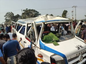 प्रत्यक्षदर्शियों के अनुसार, एएस-11 बीसी-4935 नंबर की ट्रैवलर तेज गति से चल रही थी। जैसे ही काजीडोर तृतीय खंड के शिलडुबी तेमाथा क्षेत्र को पार किया, अचानक वाहन का एक टायर फट गया। संतुलन बिगड़ने से ट्रैवलर सड़क पर दो बार पलटी खाते हुए पास के खाली स्थान में जाकर रुक गई।